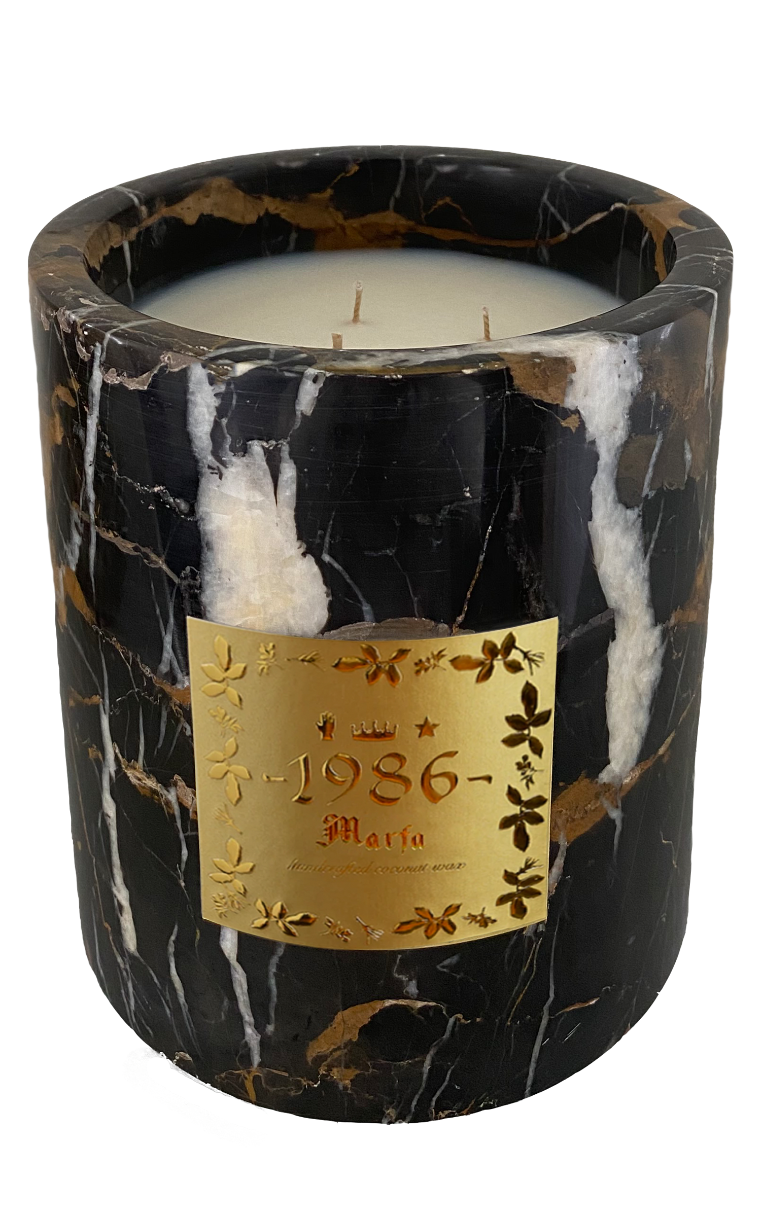 • Materials: black marble, coconut wax and cotton wick